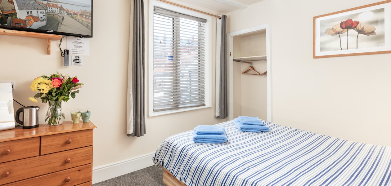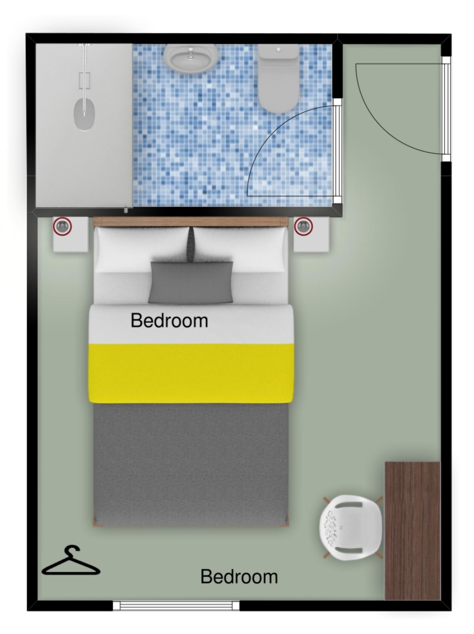 Banks is a compact budget friendly en-suite room. Situated in our quiet and centrally located Discovery House building.
