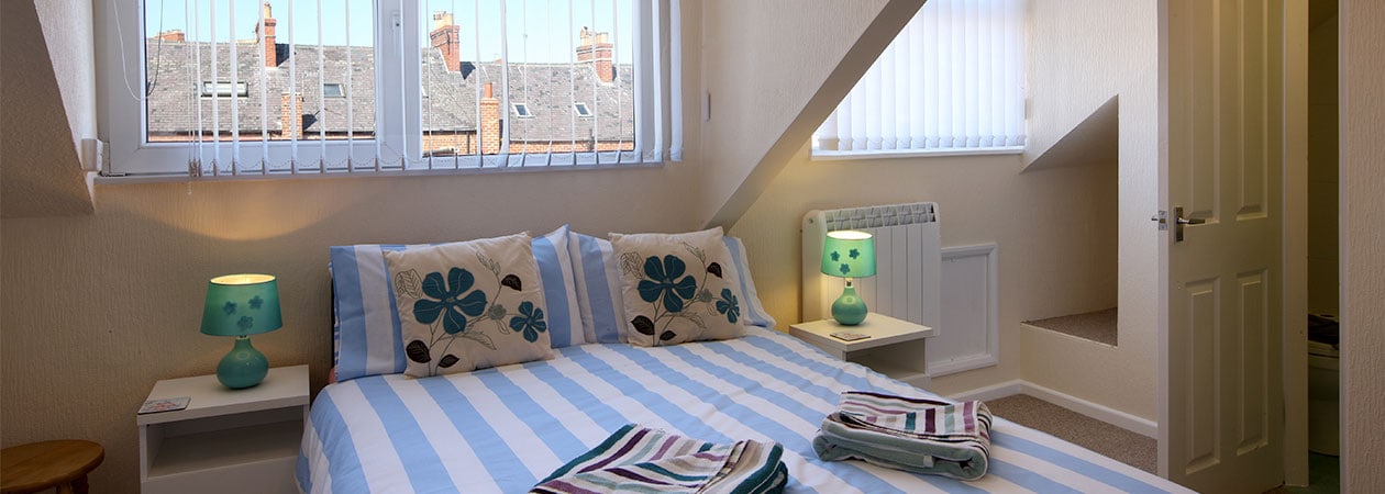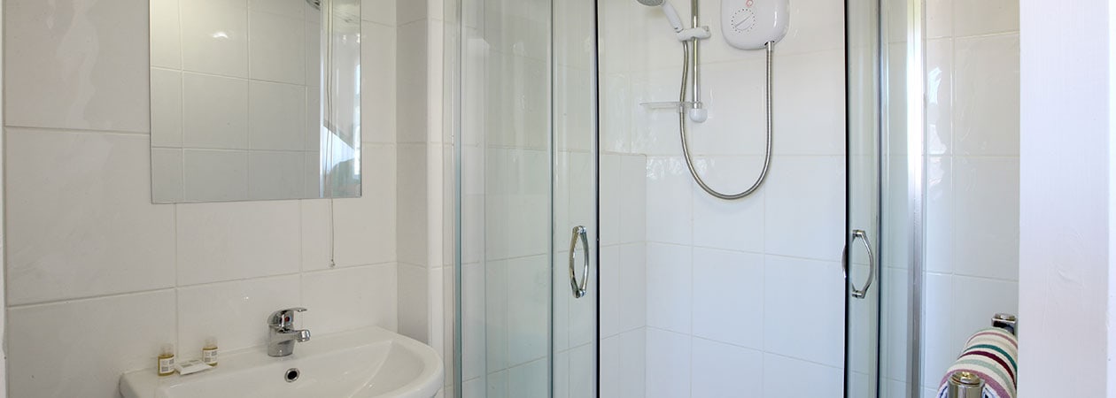 Small double room located in a Victorian terraced house, 5-minutes walk from main reception. Located on the top floor and accessible by stairs only. This room features an en-suite shower room and small flat screen TV.