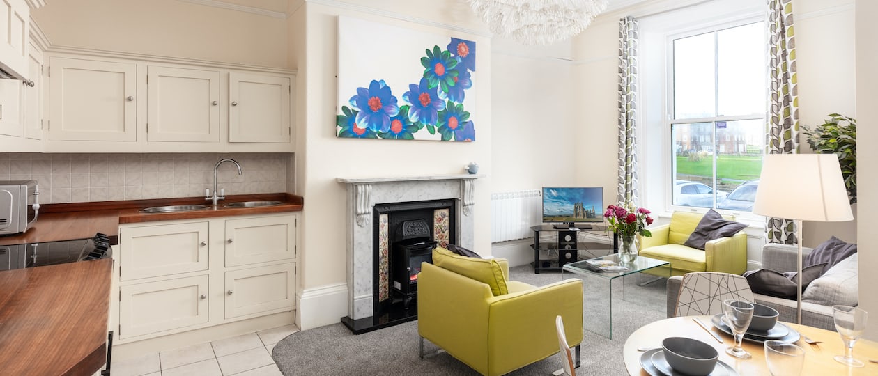 Royal 2 is a 2 bedroom apartment boasting a beautiful sea view, located in our cliff top Royal building. It sleeps up to 4 people in its 2 bedrooms, bedroom 1 is a double and bedroom 2 is a twin. As well as having a large open plan living and dining area.