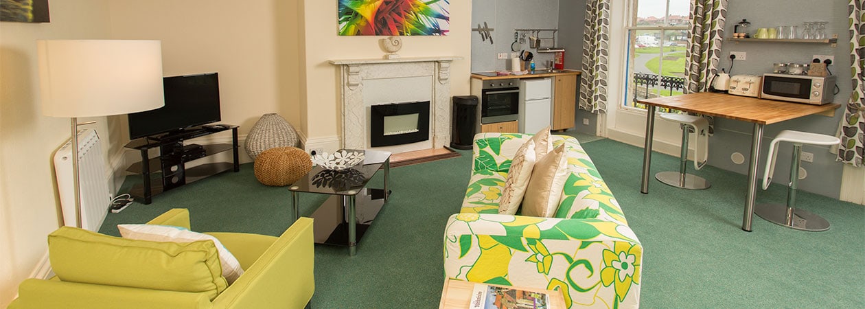 This apartment is situated on Royal Crescent which is a five-minute walk away from reception, breakfast room and pool.