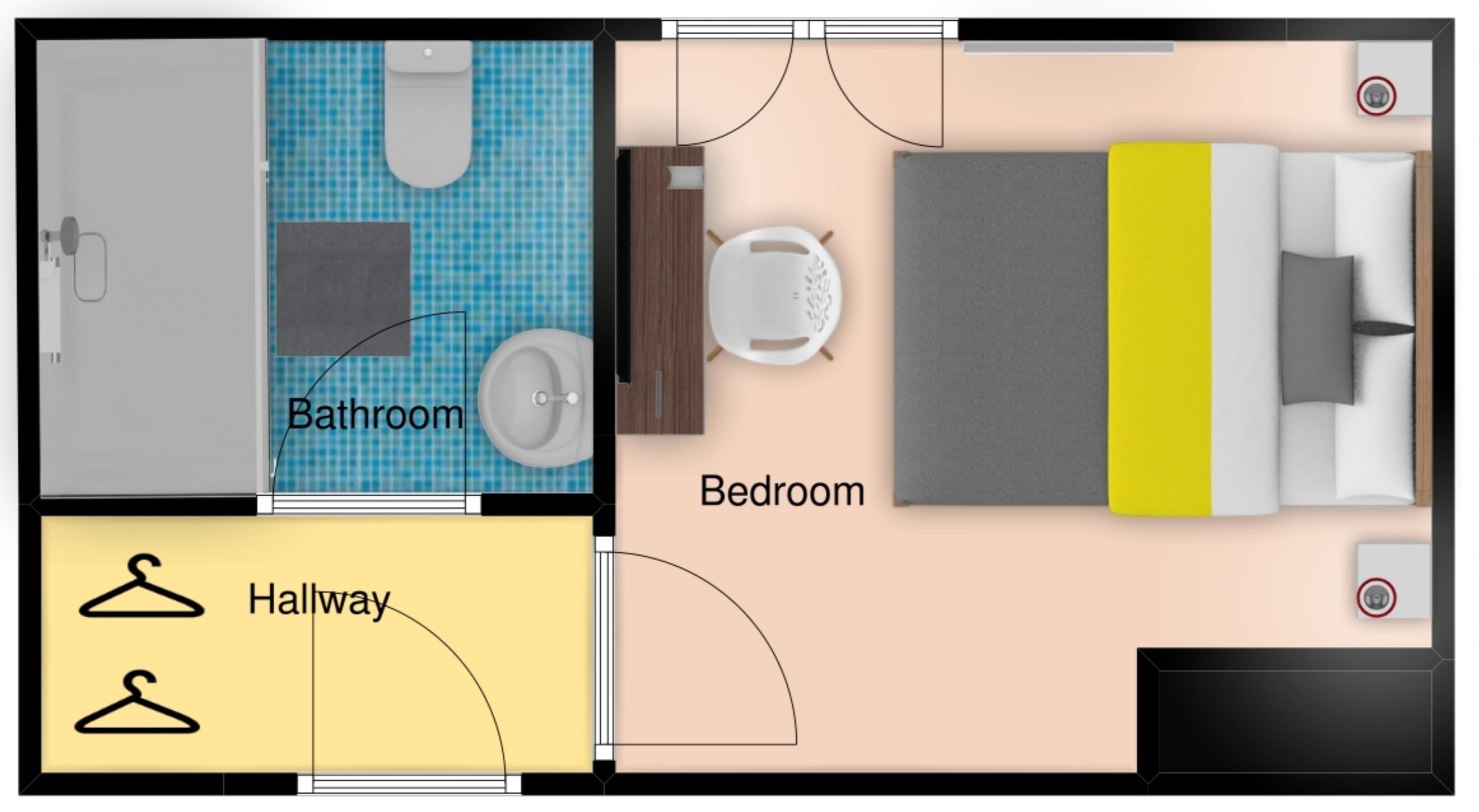 Seabreeze, Room 2 is a compact budget friendly en-suite room. Situated in our quiet and cliff top located Seabreeze building.