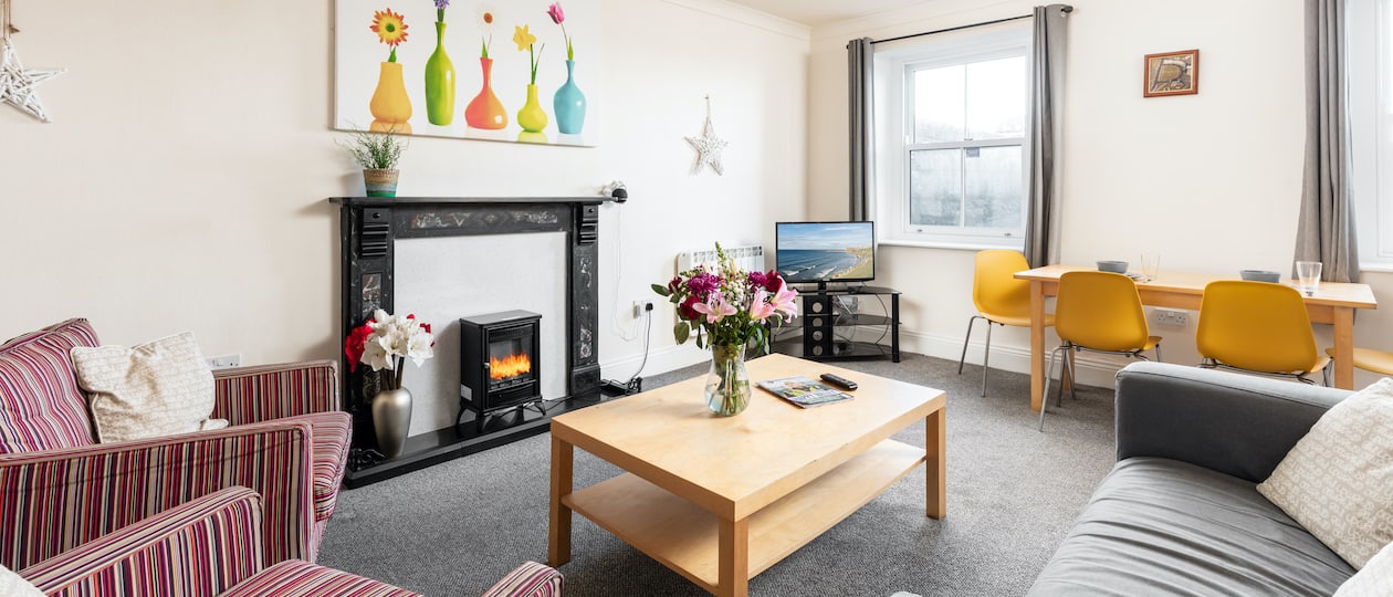 Royal 1 is a level access 2 bedroom apartment that is fully accessible and fully equipped for guests with limited mobility. This apartment sleeps up to 4 people and has 1 double and 1 twin bedroom as well a large open plan living and dining area and a separate wet room. This is located in our cliff top Royal building.