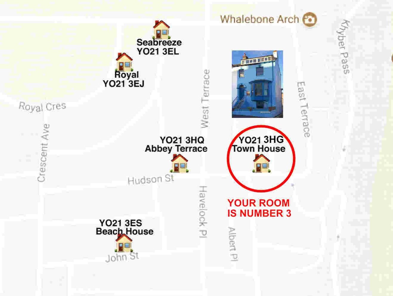 Town House 3 is a standard en-suite double room in a quiet central location.