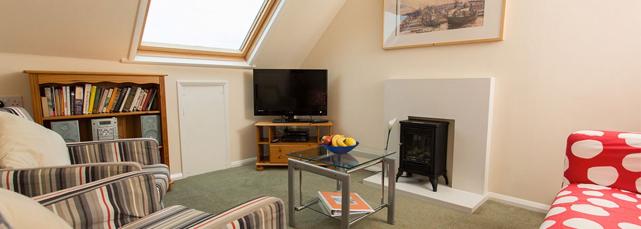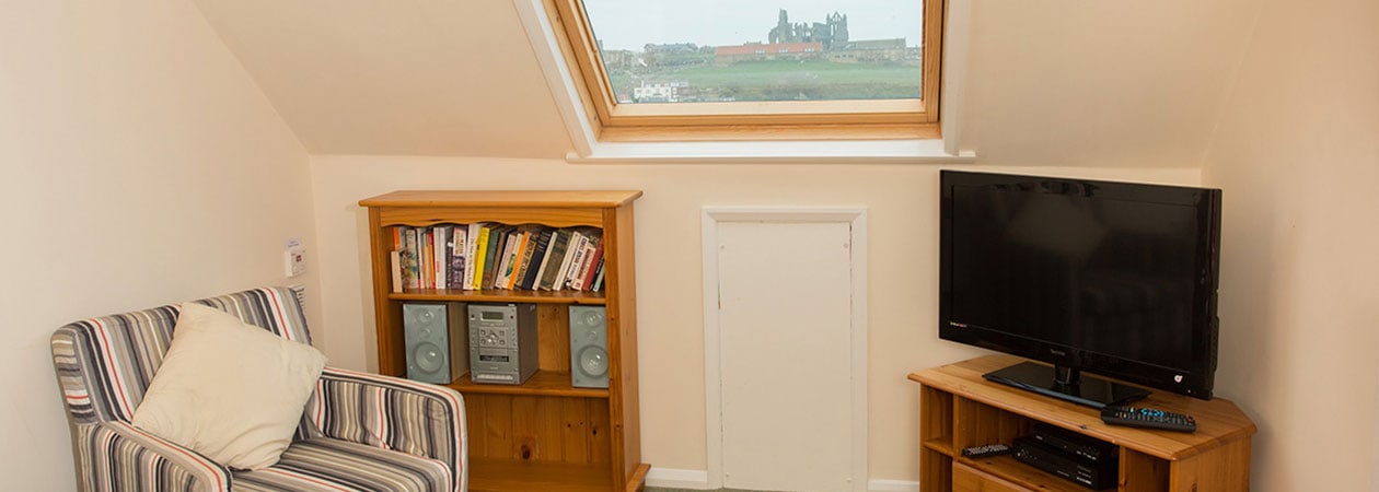 Waves is two bedroomed and is situated in the eaves of the building with superb views of the Abbey and harbour.